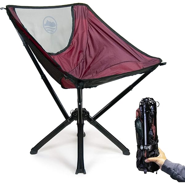 12152020 Cliq Camping Chair Bottle Sized Compact Outdoor Chair If you need a chair that is secure and saves space the Cliq camping chair is for you. At 365lbs and the size of a water bottle CLIQ Chair can go anywhere you do. Featuring aircraft grade aluminum twice stitched ripstop ballistic nylon double seams for durability and solid rubber feet tips Cliq portable chairs are built for maximum strength.