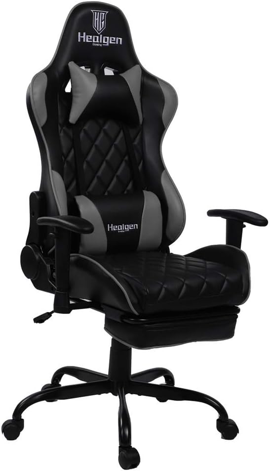 Amazon Com Healgen Gaming Chair Racing Style Gamer Chair Ergonomic Leather Video Game Chair High Back And Seat Height Adjustable Swivel Computer Gaming Chair With Footrest Lumbar Pillow And Headrest Kitchen Dining
